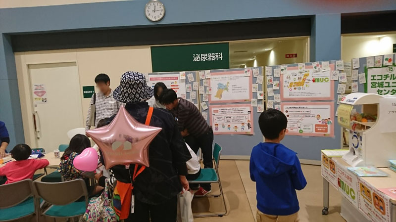 エコチル調査宮城ユニットセンターのブースでは、エコチル調査の活動内容・これまでの調査でわかった成果・集計データのパネル展示の他、ぬりえやガチャガチャを用意いたしました。
