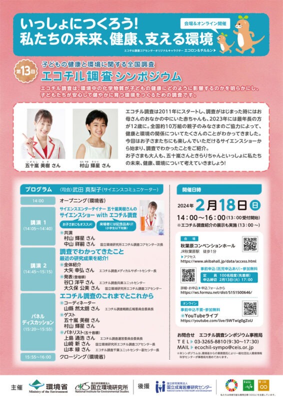 2024年2月18日(日)に、「第13回エコチル調査シンポジウム」を開催いたします。